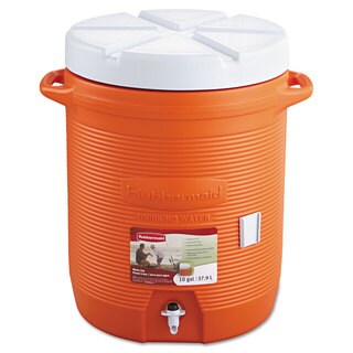 Keep beverages cold for hours. Crack-resistant polyethylene for long life. Screw top lid for a tight seal. Recessed, dripless spigots. Capacity (Volume): 5 gal; Material(s): Polyethylene; Color(s): Orange; Diameter: 10 inches.| Caractéristiques | |