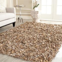 SaleSafavieh Handmade Metro Beige Suede Leather Metro Shag (4' x 6')