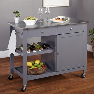 SaleSimple Living Columbus Grey Kitchen Cart with Stainless Steel Top