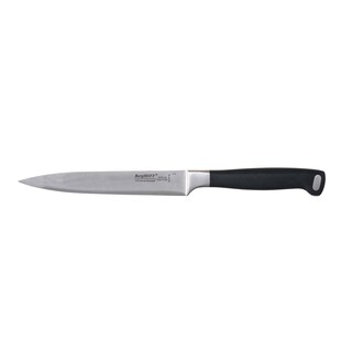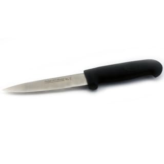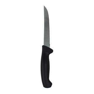 Spyderco's involvement in kitchen knives dates back to the early 1980's and the beginnings of the company's knife production. After being discontinued a number of years ago, they are now back by popular demand and better than ever. Spyderco's current kitchen knives combine all the distinctive features of the originals with an improved handle material that offers increased durability. The K04 Utility Knife has a 6.5-inch drop-point blade that is ideal for a broad range of kitchen cutting chores, making it the most popular go-to knife in many home and commercial kitchens. Like the original version, it features a premium MBS-26 stainless steel blade, ground exceptionally thin and meticulously heat treated for optimal cutting performance. Its durable polypropylene plastic handle is injection molded directly onto the tang of the blade and features a distinctive stepped texture pattern that provides exceptional comfort and control during use. This version of the K04 features a breathtakingly sharp PlainEdged blade and a black handle.| Caractéristiques | |