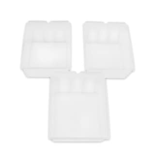 Eighteen (18) multi-drawer design for storing a wide variety of parts and supplies. Clear see-through drawers provide quick identification of each drawers contents. Supports on the cabinet frame provide added strength and improve drawer action. Large ribbed drawer pulls make it easy to access contents. Built-in stop tabs prevent drawers from pulling out all the way. Easily mounts on wall or stands on bench or counter top. Drawer dividers available to create additional storage. Dimensions: 14.875 inchW x 6.375 inches deep x 18.5 inches high. Drawer dimension: 4 7/16 inches wide x 5.5 inchD x 2 5/16 inches high.| Caractéristiques | |