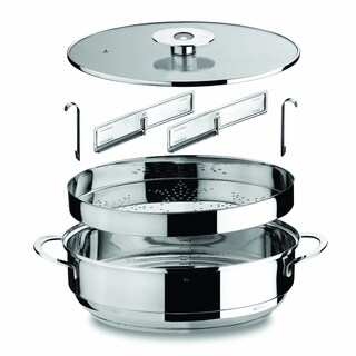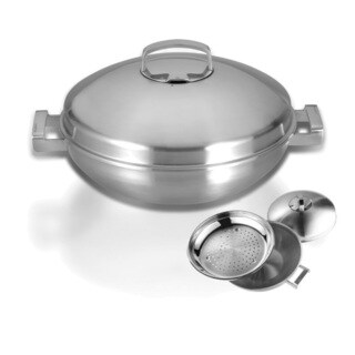 Saute, steam, deep fry or even roast using this versatile cook pan. This set is constructed of a durable stainless steel and includes a vented lid, a frying basket and a steamer plate.- Materials: Stainless steel