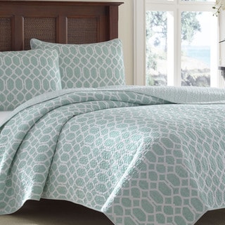SaleTommy Bahama Catalina Trellis Harbor Blue Reversible 3-piece Cotton Quilt Set