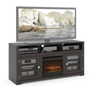 SaleSonax West Lake Collection Wood Dark Espresso Fireplace 60-inch Entertainment Center