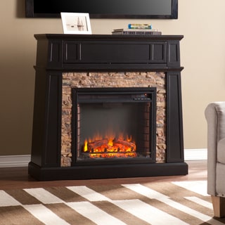 SaleUpton Home Fitzgerald Black Faux Stone Electric Media Fireplace