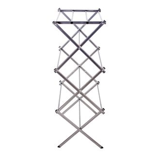 This steel rack drops open into position with 11 slender rods to drape delicates, woolens, swimsuits, and clothes. Its top level works well for flat-drying sweaters. The accordion design folds flat for compact storage and can slip easily beside a washing machine, in a closet, or behind a door when not in use.| Caractéristiques | |