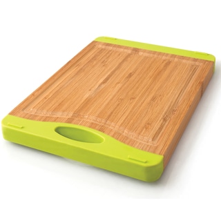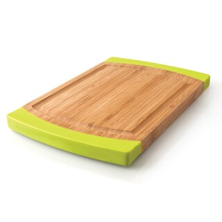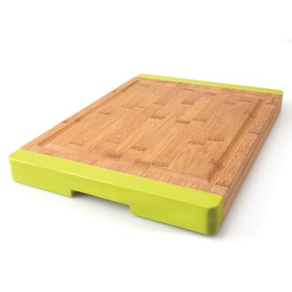 Chopping board features lime green silicone accents to prevent skidding and a groove around the board to prevent juices from spilling off. Bamboo chopping boards are seeing a resurgence in popularity as they are considered a 'green product.' Caring for bamboo cutting boards is easy, just wash with soap and water. The natural beauty and durability is unique.| Caractéristiques | |