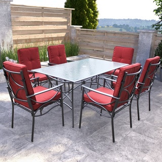 SaleCorLiving 7pc Charcoal Black and Red Patio Dining Set