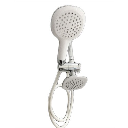 With this deluxe twin shower head, you can treat yourself to a relaxing shower. This set includes two (2) shower heads and a 5-foot white hose. This piece installs in minutes without any tools.- Colors/finish: White