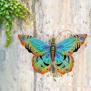 SaleSunjoy 22-inch Blue Butterfly Hand-Painted Iron Outdoor Wall Decor Set