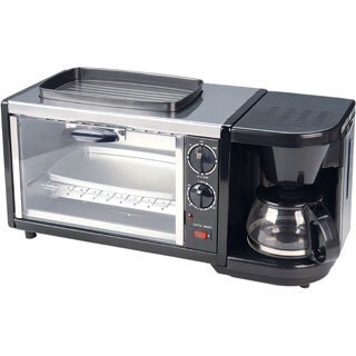 This 3-in-1 breakfast maker combines all the breakfast necessities into one: Toaster oven, coffee maker and frying pan. This is the perfect compact appliance for dorms, offices, RVs, studios or wherever space is limited.| Caractéristiques | |
