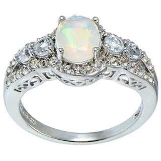 SaleGlitzy Rocks Sterling Silver Ethiopian Opal Blue and White Topaz Ring