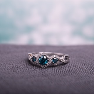 SaleMiadora 1/2 CT Blue and White Diamond TW 3 Stone Ring 14k White Gold GH I2;I3 Blue Rhodium Plated