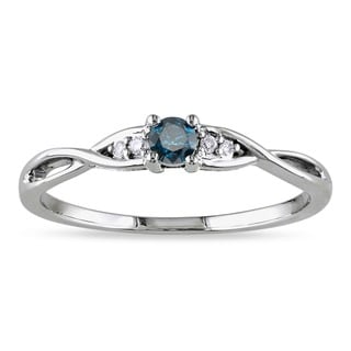 SaleMiadora 10k Gold 1/6ct TDW Blue and White Diamond Ring (G-H, I2-I3)