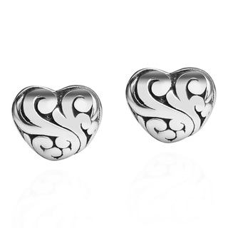 SaleSwirls Heart Shaped .925 Sterling Silver Post Earrings (Thailand)