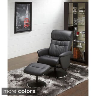 SaleContemporary Leather Recliner and Ottoman with Leather Wrapped Base