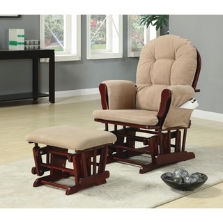 SaleCoaster Brown Microfiber Glider Recliner Chair with Matching Ottoman