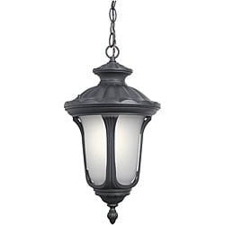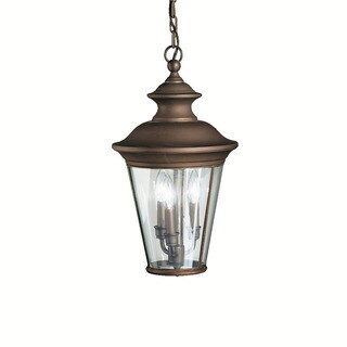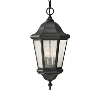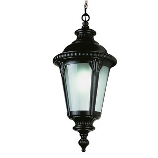 This traditional 3-light outdoor pendant features a hand painted distressed black finish. The clear seedy glass adds interest and will complement many outdoor decors. Dimensions: 24.5 inches high x 11 inch diameter.| Caractéristiques | |