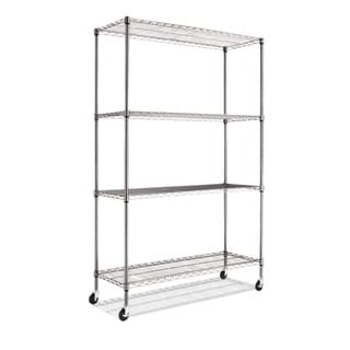 Customize your storage capabilities with the Trinity EcoStorage wire shelving rack, featuring wheels for more portability. Simply use the adjustable feet levers to activate the wheels and create a transportable storage unit. The shelves are adjustable in one-inch increments to store any product or belonging, short or tall.Made with heavy-duty steel, this Trinity EcoStorage shelf provides long-term, dependable storage in any room. Avoid buying several different shelves as this model holds up to 600 pounds of weight per shelf. Save money and space with this durable metal rack with several shelf platforms for flexible storage.