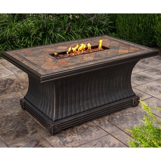 SaleFlorence Rectangular Slate Topped Gas Firepit Table with Red Lava Rock Strip Burner and Weather Cover