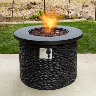 Bring the warmth and ambience of a fireplace to your patio, deck or backyard with this Uniflame LP fire pit, by Blue Rhino. Featuring a large faux stone hearth, this outdoor fire pit is accented with a simulated stacked stone base cabinet that cleverly conceals a propane tank (not included) and control panel, making it an attractive centerpiece for your outdoor space. Adding to its elegance, this unit comes with lava rock, which beautifully accents its flames.- Materials: Faux stone, lava rock