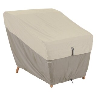 From the Veranda Collection by Classic Accessories, this Adirondack chair cover with the Gardelle Fabric System features an elegant fabric top with a protective water-repellent and resistant PVC undercoating and a protective dark splash guard skirt. Air vents reduce inside condensation and wind lofting. Padded handles for easy fitting and removal. Elastic hem cord with a toggle allows adjustment for a tight and custom fit. Click-close straps snap over legs to secure cover on the windiest days. Fits Adirondack chairs up to 33.5 inches long x 31.5 inches wide x 36 inches high. Not designed to entirely cover the leg bottoms.- Air vents reduce inside condensation and wind lofting