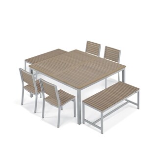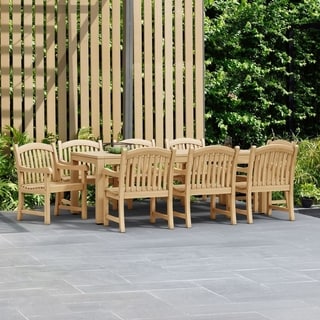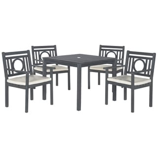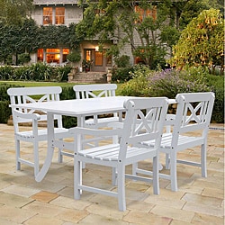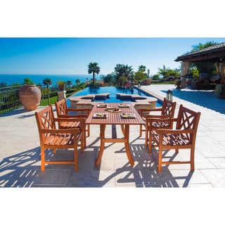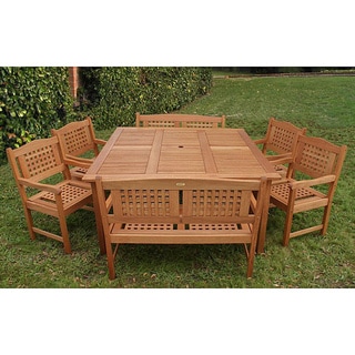 Consider this dining set your patio's newest center of gravity. Made from eco-friendly high-density Eucalyptus hardwood, this seating arrangement is one that will resist mold, mildew, fungi, termites, rot, and decay. Make way for dinner parties, idle summer cocktails, and the optimization of fresh breezes to come!| Caractéristiques | |