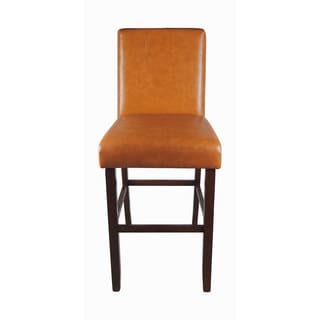 Made with rubberwood legs and faux leather, this durable set of two stools offers years of use and is easy to keep clean. Filled with safe, fire-retardant foam, these stools offer a comfortable place for guests to sit while resting at your home bar or kitchen counter. Designed to accommodate people of various heights, these stools feature square footrests for increased comfort.Give your home an energized atmosphere with this set of two stools, which feature a lively sunrise orange finish. Sturdy rubberwood legs with a dark walnut finish complement the upholstery and complete the contemporary design.