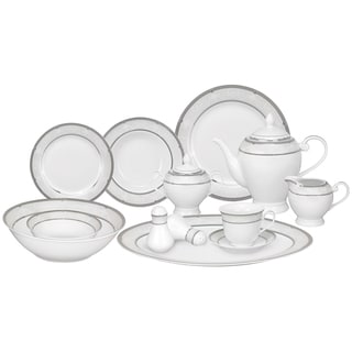 SaleLorren Home Trends 57-piece Porcelain Dinnerware Set with Silver Accent