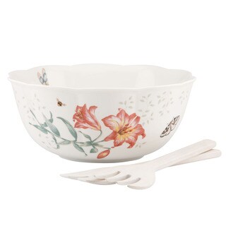 SaleLenox Butterfly Meadow Salad Bowl & Wooden Servers Set