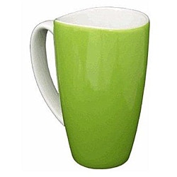 These wavy rim ceramic coffee mugs feature an elegant green finish and white handles. With a dishwasher-safe construction, these easy-to-clean mugs are a kitchen asset.