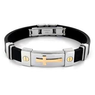 SaleStainless Steel and Black Rubber Goldplated Cross ID Bracelet