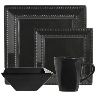 SaleVivo Black Beaded Square 16-piece Dinner Set