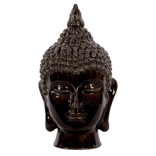 SaleHand-crafted 10-inch Black Resin Thai Buddha Head Statue (China)