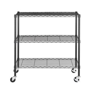 Heavy duty black epoxy steel construction allows you to expand your shelf space in any room with this three-tier storage rack. This durable unit features 200-pound capacity shelves and adjustable leveling feet.Store objects of varied sizes with this 29.9-inch wire rack. Each level of this durable shelving unit can easily be adjusted according to your needs. Its chrome steel finish makes this product an instant fit to any room style or theme. Organize an indoor tool shed or closet in moments.