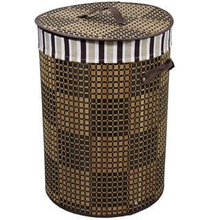 SaleCheckered Round Folding Bamboo Laundry Basket with Handle