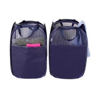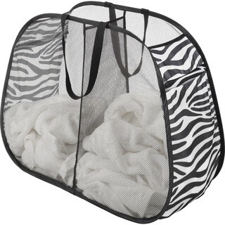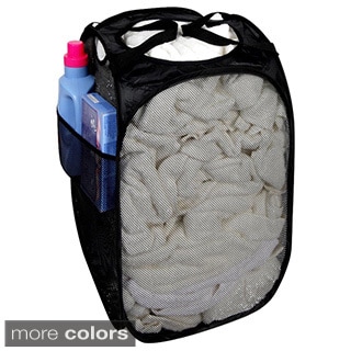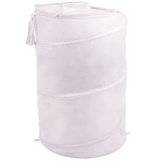 Pop & Fold Double Hamper in white with easy to assemble flexi frame, mesh and moisture-proof polyester. Two sections keep laundry organized, heavy-weight carrying straps ensure you can bring all of your laundry along.This collapsible double-compartment Pop & Fold hamper is a great laundry management tool for college students and young adults. Save time by pre-sorting laundry into this moisture-proof polyester hamper, cart all your laundry to wash, and when you're done just flatten and store the hamper. The open mesh construction allows air to circulate, deterring bacteria and mildew growth.