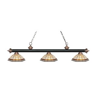 Traditional charm defines this three light fixture. The bar is finished in Golden Bronze and is paired beautifully with three multi colored tiffany shades for an inviting glow. This fixture would be equally at home in the game room, or anywhere else in your home needing a touch of timeless charm.| Caractéristiques | |