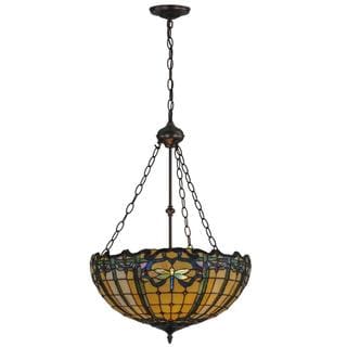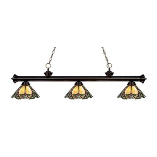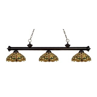 This handcrafted Tiffany-style billiard fixture features hand-cut pieces of stained glass wrapped in fine copper foil. Traditionally charming, this three-light fixture features a bar finished in bronze for an inviting glow.| Caractéristiques | |