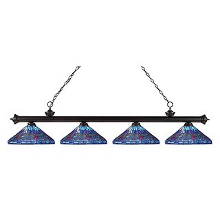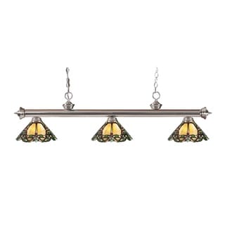Handcrafted in the Tiffany style, this three-light billiard fixture contains hand-cut pieces of stained glass, each wrapped in fine copper foil. The traditional charm of this light stems from the brushed nickel and multi-colored glass shades.| Caractéristiques | |