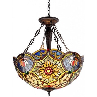 Handcrafted in the Tiffany style, this three-light billiard fixture contains hand-cut pieces of stained glass, each wrapped in fine copper foil. The traditional charm of this light stems from the brushed nickel and multi-colored glass shades.| Caractéristiques | |