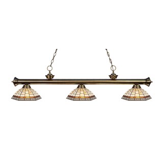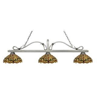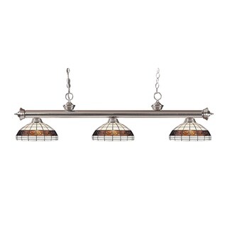 Handcrafted in the Tiffany style, this three-light billiard fixture contains hand-cut pieces of stained glass, each wrapped in fine copper foil. The traditional charm of this light stems from the brushed nickel and multi-colored glass shades.| Caractéristiques | |