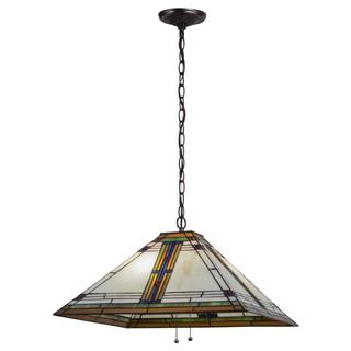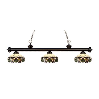 Handcrafted in the Tiffany style, this three-light billiard fixture contains hand-cut pieces of stained glass, each wrapped in fine copper foil. The traditional charm of this light stems from the brushed nickel and multi-colored glass shades.| Caractéristiques | |