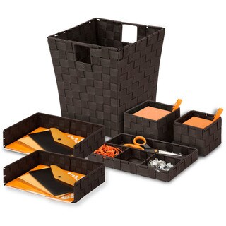 Honey-Can-Do OFC-03690 Desk Organizer, Black/White. Perfect for organizing mail, notepads and other desktop essentials, this organizer features two large compartments and two small compartments for displaying its contents. The strong weave of the double woven straps and the durable steel wire frame ensure the items in the organizer will stay in one place. The modern design is practical and complements any home or office decor. Coordinates with other pieces in Honey-Can-Do's collection of double woven office products.| Caractéristiques | |