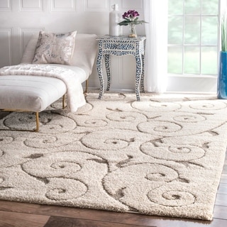SalenuLOOM Soft and Plush Vine Swirls Ivory Shag Area Rug (9'2 x 12')