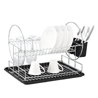 SaleSpace Saving 2-tier Black and Chrome Side Circle Design Dish Rack Set