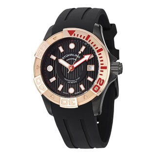 Three subdials, and date display top the black dial of this rugged men's watch from Akribos XXIV. A black rubber strap, tachymeter and luminescent hands finish the masculine style of this timepiece.