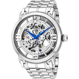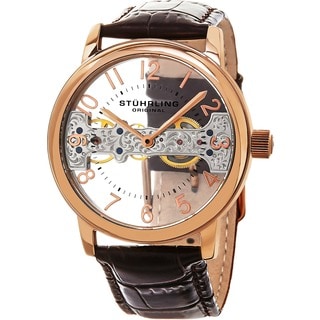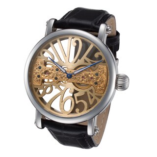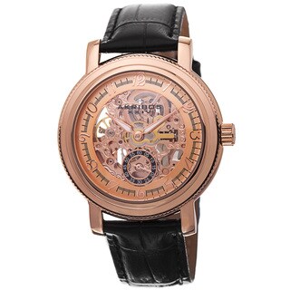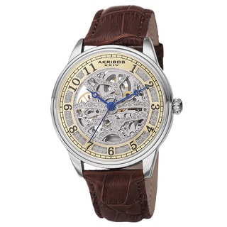 An exhibition case back, with a Krysterna shatter-proof crystal makes this Akribos XXIV men's automatic watch a standout accessory. With a silvertone skeleton dial and leather strap, this watch is an elegant timepiece for a busy man.| Caractéristiques | |