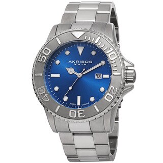This elegant men's timepiece form Akribos XXIV features a beautiful sunray dial and durable stainless steel bracelet. The crystal baguettes on the bezel will add a sparkle to your day while the Swiss quartz movement insures accurate time.| Caractéristiques | |
