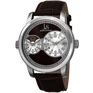 SaleJoshua & Sons Men's Swiss Quartz Dual Time Zone Genuine Leather Strap Watch